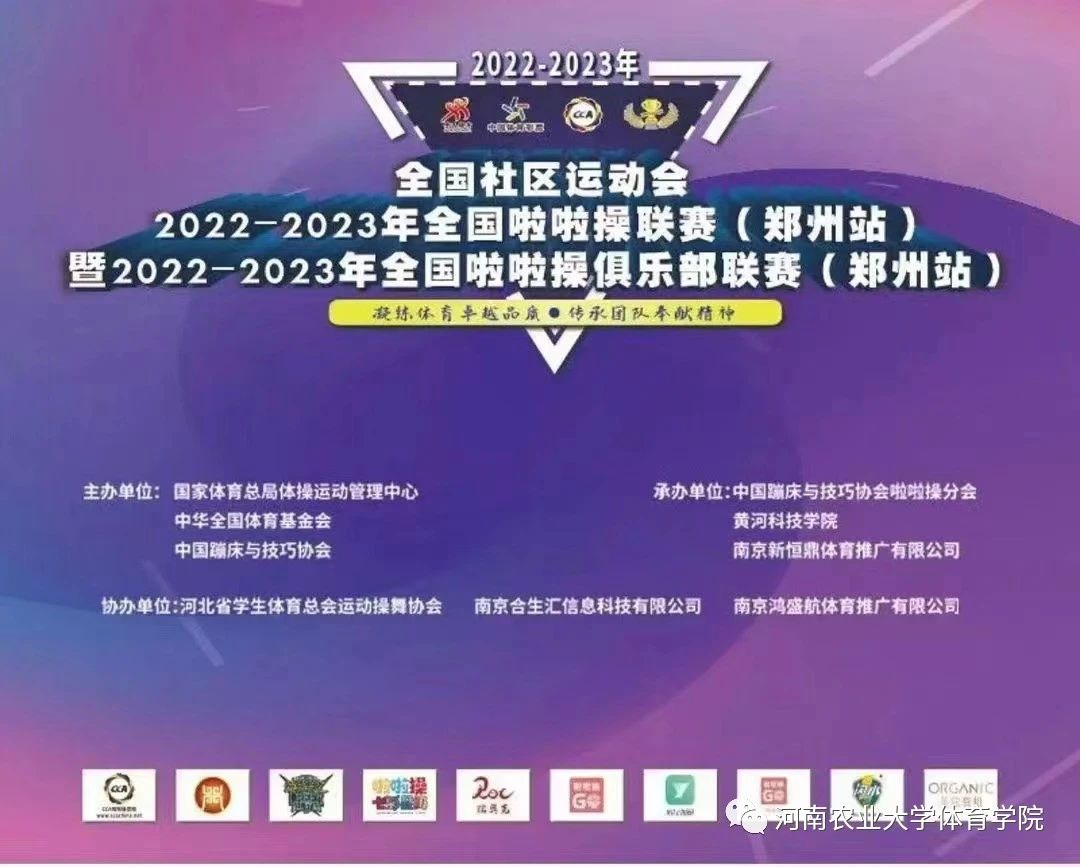 院长董勇带队,杨岚、赵佳慧两位老师指导,20名舞蹈表演和社会体育指导与管理专业同学组成。在此次比赛中我校代表队连续斩获2022-2023年全国啦啦操联赛(郑州站)和2022-2023全国啦啦操俱乐部联赛(郑州站)两项赛事第一名!