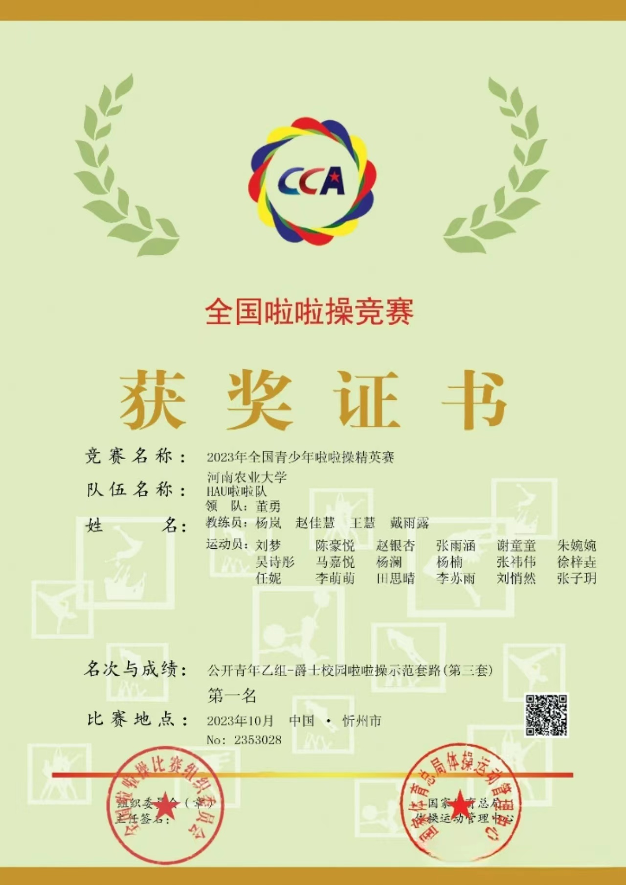 在本次比赛中,91猫先生体育艺术系教师杨岚、赵佳慧、王慧、戴雨露担任教练,舞蹈表演专业学生组成的啦啦队在本次比赛中获得了公开青年乙组-爵士校园啦啦操示范套路(第三套)第一名和公开青年乙组-街舞校园啦啦操示范套路(第三套)第三名。
