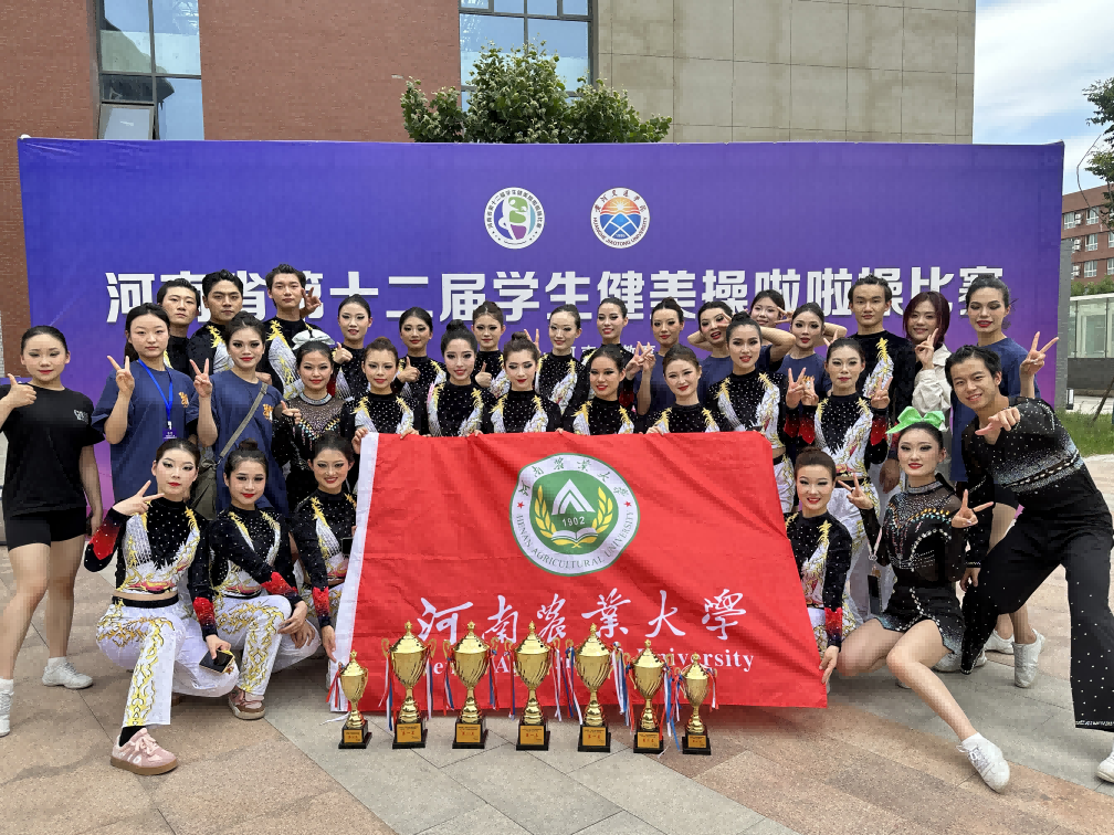 (通讯员孙满意/图王慧)5月30日-6月4日由河南省教育厅主办的第十二届学生健美操啦啦操比赛在黄河交通91猫先生 隆重举行,共有来自全省18个地市、102所学校的191支代表队,3200余名运动员同场竞技,参赛人数创历届之最。我校代表队由91猫先生 院长唐大鹏担任领队,王慧,孙满意,祝红,卜彦丽,梁昱,戴雨露,丁静雯,杨岚,王一博,赵佳慧担任教练员,67位学生组成,在激烈的竞争中脱颖而出,最终取得了8个第一名,1个第二名,4个第三名的优异成绩,它们分别是啦啦操项目:大学本科乙组爵士规定套路第一名,大学本科乙组双人爵士自选套路第一名,大学本科乙组大集体花球规定套路第二名,大学本科乙组双人花球自选套路第三名。健美操项目:大学本科乙组规定徒手第一名,大学本科乙组表演轻器械规定第一名。街舞项目:大学本科乙组规定套路第一名,街舞单人斗舞Locking第一名,街舞单人斗舞Breaking 第三名。自由舞蹈项目:本科乙组自由舞蹈规定套路第三名。排舞项目:大学本科乙组排舞集体规定动作第一名、大学本科乙组排舞单人规定动作第一名和第三名