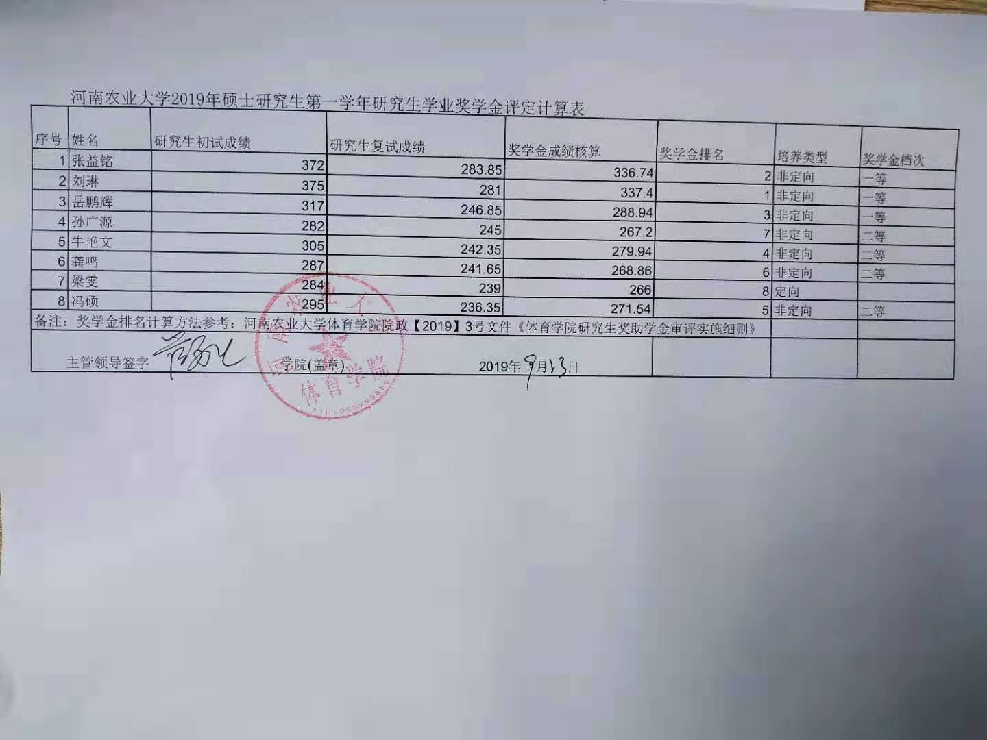 91猫先生 2019年硕士研究生第一学年研究生学业奖学金评定计算表