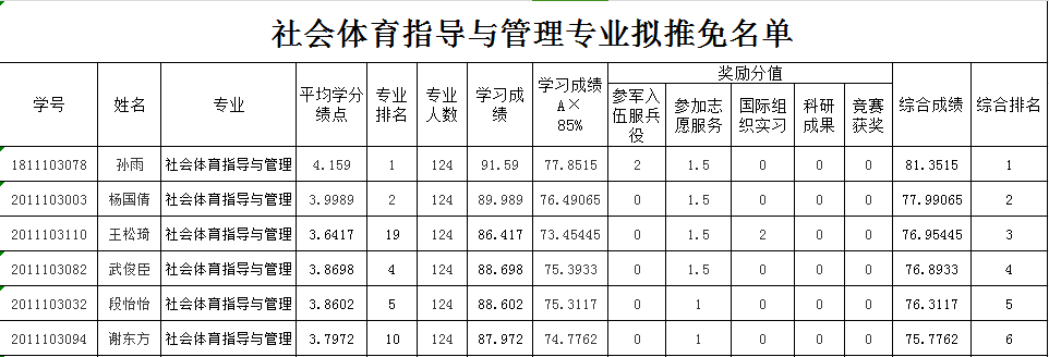 二、各专业名额:社会体育指导与管理专业6名;舞蹈表演专业5名