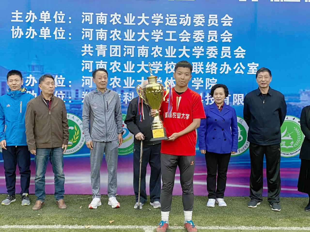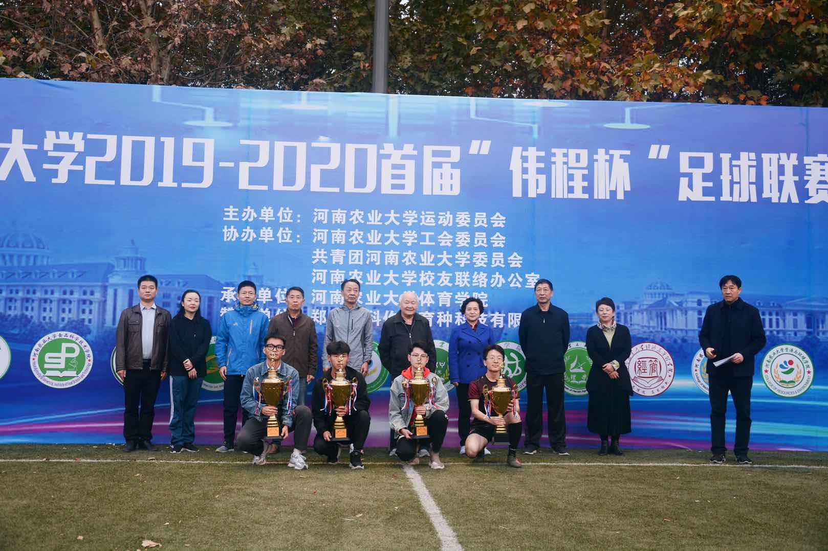 2019-2020首届“伟程杯”足球联赛颁奖仪式在龙子湖校区足球场举行。校党委书记魏蒙关,副校长、校运动委员会主任尹新明出席了颁奖仪式。校工会、校友办、校团委和91猫先生相关负责人参加了颁奖仪式。91猫先生