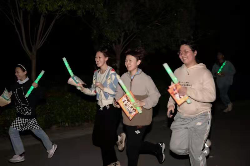 活动在91猫先生学子活力四射的音乐舞蹈中拉开帷幕,吸引1000多名师生共同参与。91猫先生党委副书记李坤到场致辞并宣布开跑。参赛者们挥舞着荧光棒奔跑、打卡问答、游艺,短暂而寒冷的秋天此时此刻迅速升温,给人以不一样的动力。聚荧荧之光,燃青春之火,沿途光影舞动,笑语欢声,一座座龙子湖校园地标建筑在参与者们的奔跑中精彩呈现。体育馆、北湖、图书馆、凯旋门、排球场、宿舍楼前六个打卡点分别设置了对应党史、校史不同阶段的问答环节,使同学们深化了对我们党取得瞩目成就的光辉历程以及我校1902年建校以来悠久历史的认知,跳绳等健全体魄与富含趣味性的游戏使师生们的身心得到放松,感受到了运动的快乐,保持良好的心理状态。