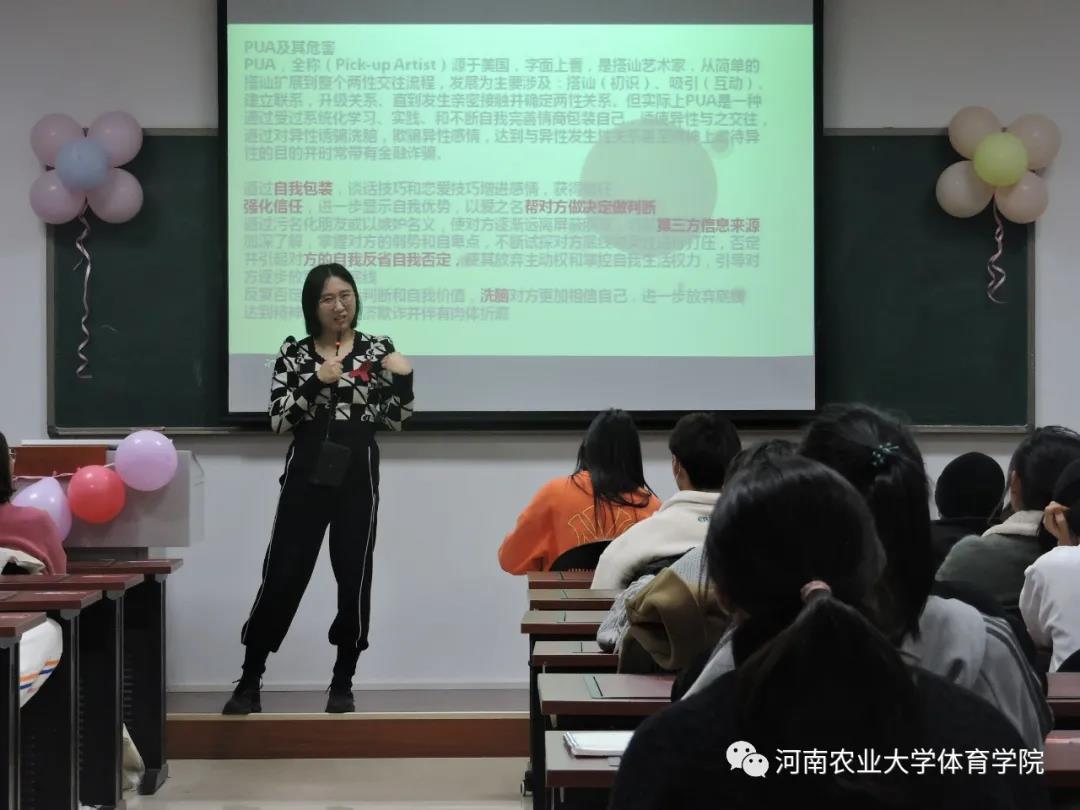 赵蕊老师担任主讲人。讲座中赵蕊老师以艾滋病预防、学会去爱、学会被爱三个方面使同学们快速了解艾滋病的致病原理及传播途径,引导同学们以理性、安全的方式树立正确、积极的恋爱观。赵蕊老师在讲座中声情并茂,与同学们频繁互动,现场不时响起热烈的掌声。