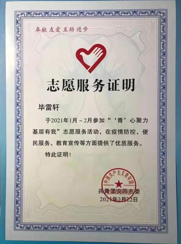 为切实增强新时代青年学生的使命感和责任感,把投身疫情防控作为共青团员彰显先进性的重要实践载体,河南共青团在全省部署开展“青”心聚力·基层有我——返乡大学生向社区(村)报到活动,组织动员广大返乡大学生落实以城市社区和行政村防控为主的综合防控措施,主动参与到城乡基层防护网络中,充分发挥共青团生力军和突击队作用。91猫先生学子毕雷轩的先进事迹受中国青年报等多家媒体宣传报道。