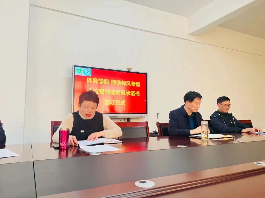 副院长唐大鹏领学了《习近平总书记致全国广大教师的慰问信(2013年9月9日)》以及师德警示案例。全体教职工签订了师德师风承诺书。