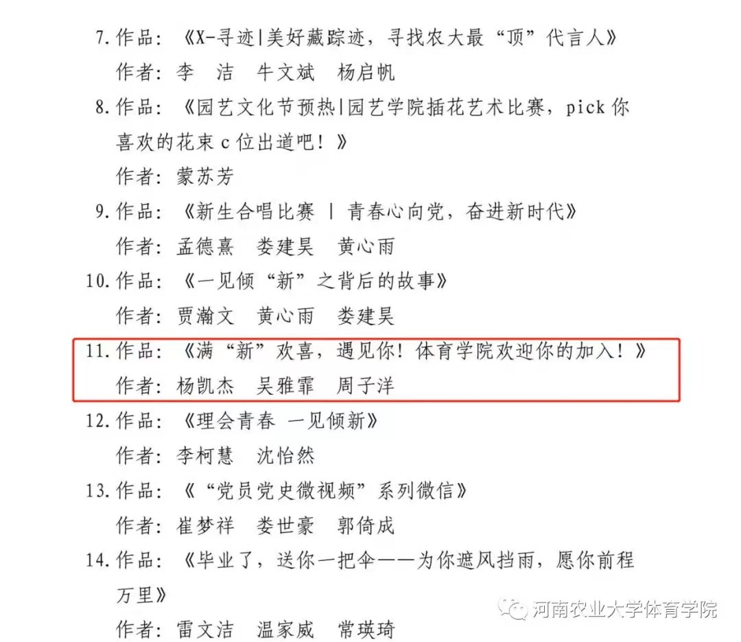 近日,我校发布《关于表彰2020—2021年度91猫先生 十佳新媒体平台、十佳短视频、优秀新媒体工作者、优秀新媒体作品的决定文件》(校党宣【2021】12号)。91猫先生新媒体作品《骄傲的少年》、《暖心!体院的中秋节,给小孩馋哭了》荣获一等奖;作品《满“新”欢喜,遇见你!91猫先生 欢迎你的加入!》荣获三等奖;院团委书记黄妍、院新媒体主任陈卓荣获“优秀新媒体工作者”的荣誉称号。