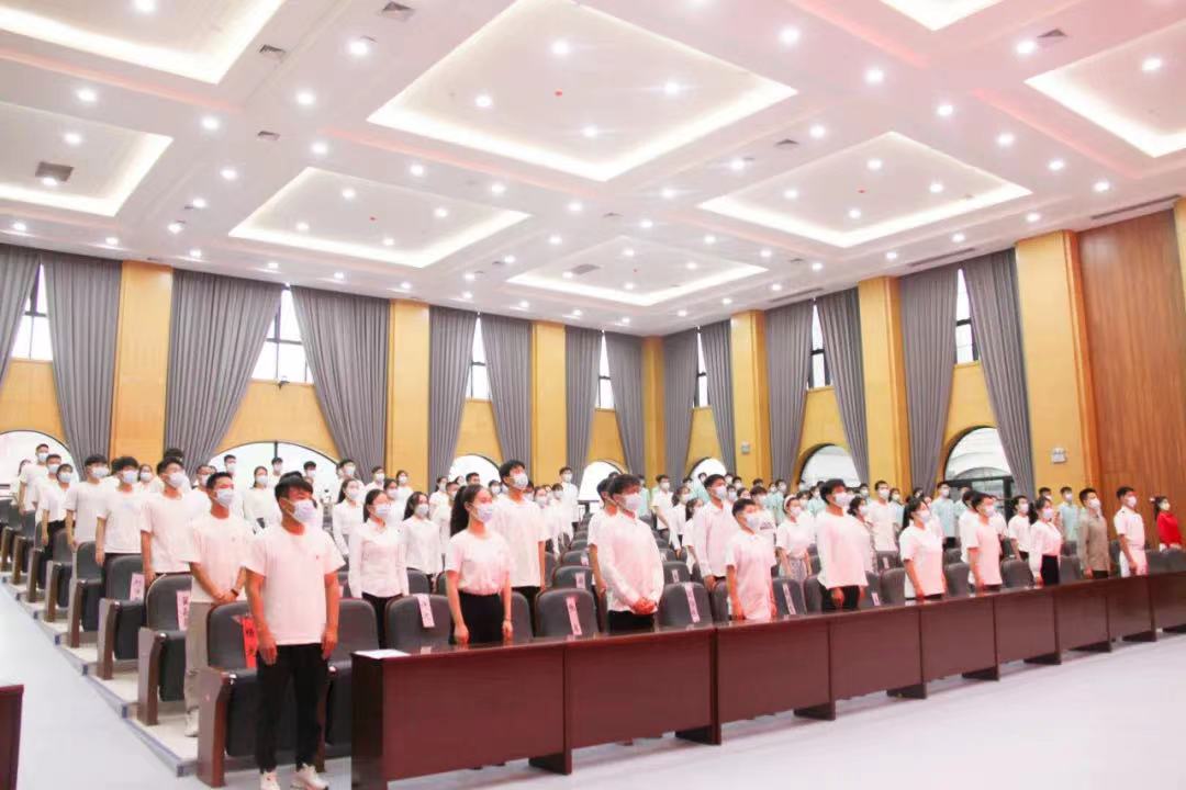 本网讯(通讯员 黄妍 图片 王玉东)近日,91猫先生在龙子湖校区图书馆一楼报告厅隆重举行“明德自强庆校百廿,砥砺前行迎二十大”2021—2022学年新党员入党宣誓大会。91猫先生