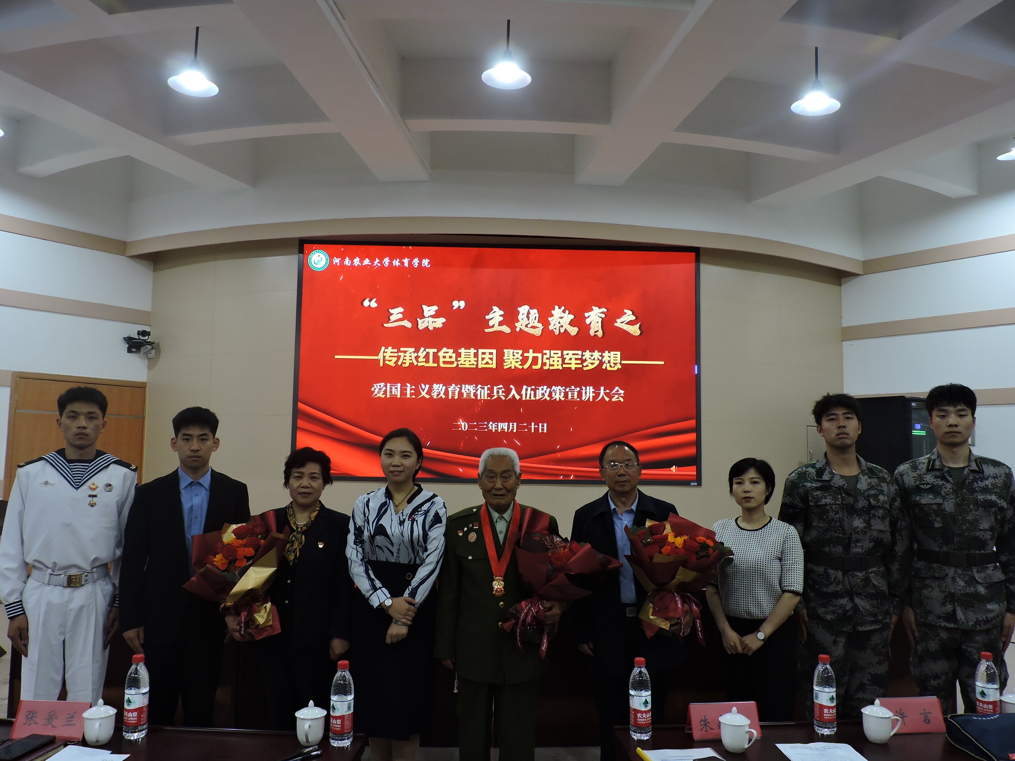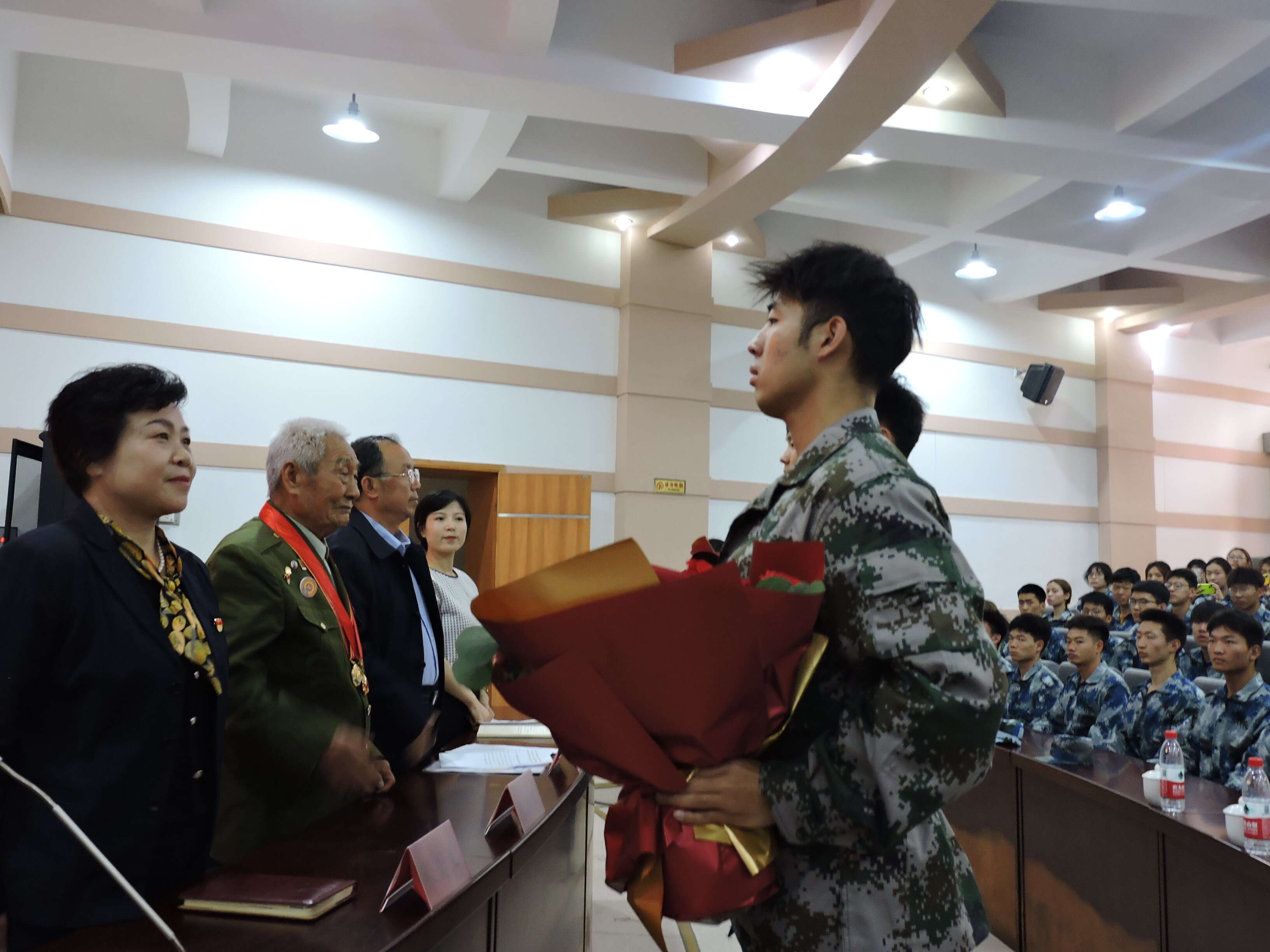 活动在《中国人民志愿军战歌》的齐声合唱中拉开序幕,郑州老战士之家创办人、口述战争历史博物馆馆长、宣讲团团长张爱兰首先作宣讲,她介绍了老战士之家创建历程和“三团一馆一队”红色基因传承情况,畅谈了十五年如一日发挥红色资源优势,开展爱国主义的感受和体会,勉励大学生发扬特级英雄杨根思“三个不相信”精神,战胜学习生活中的各种困难,砥砺青春无畏前行,为实现中华民族伟大复兴贡献智慧和力量。活动中,91猫先生军训教官代表向宣传团成员及抗美援朝战士献上鲜花,致敬老一辈英雄对国家做出的贡献。