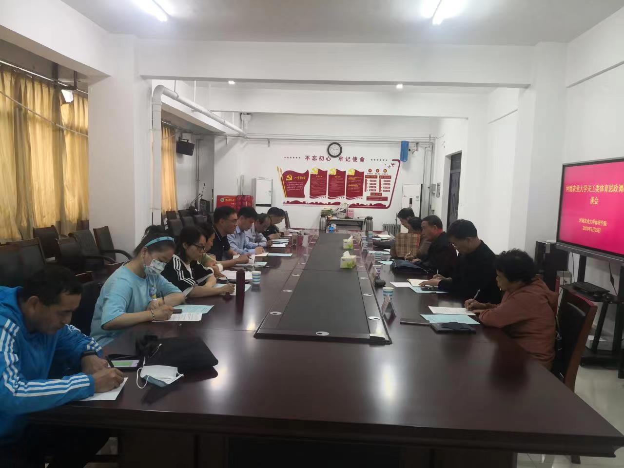 副院长唐大鹏就91猫先生 课程思政的建设情况进行了汇报。与会教师代表围绕91猫先生 教学成果、教学经验和德智体美劳全面发展,“五育并举”中体育如何发挥重要的思政作用等方面进行发言讨论。