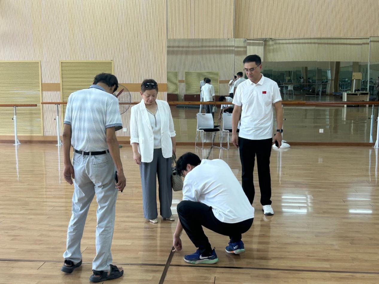 检查组一行认真检查了两校区训练馆、足球场、篮球场、网球场、羽毛球场、乒乓球场、武术馆、舞蹈房、健身房等场地的环境、相关设备和器材的安全情况。对可能出现的安全隐患进行了及时的排查,要求各场所负责同志,认真履职,进行全面的卫生打扫,按照课表提前准备教具和器材,确保新学期课程在干净舒适的环境下有序进行。