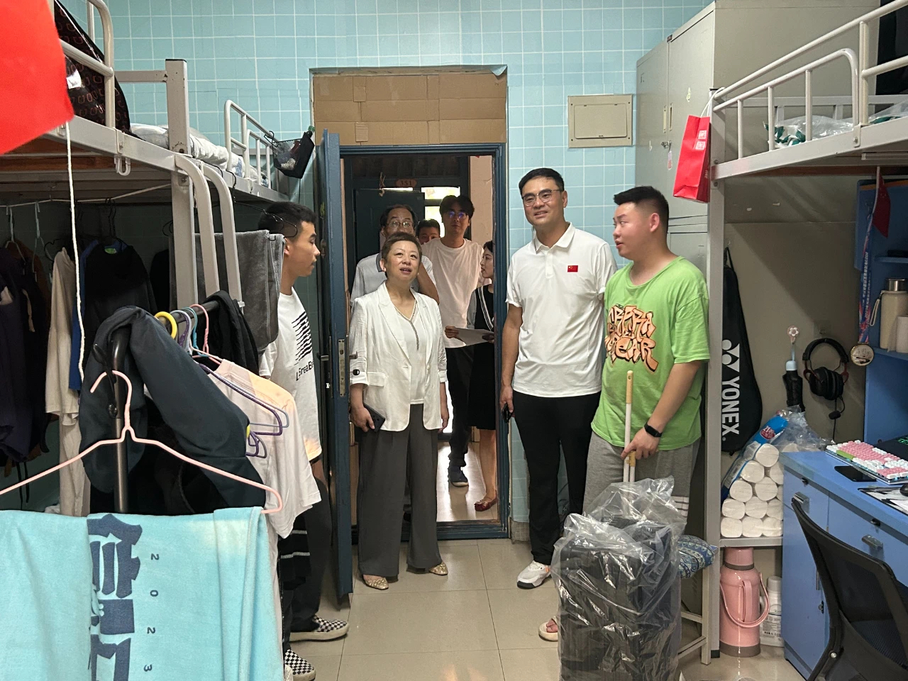 检查组一行又深入紫竹和菊潭学生宿舍,看望慰问返校同学,详细了解各班返校情况和同学们的暑期经历,鼓励大家及时调整心态,尽快熟悉环境,以饱满的状态投入新学期的学习和生活中。