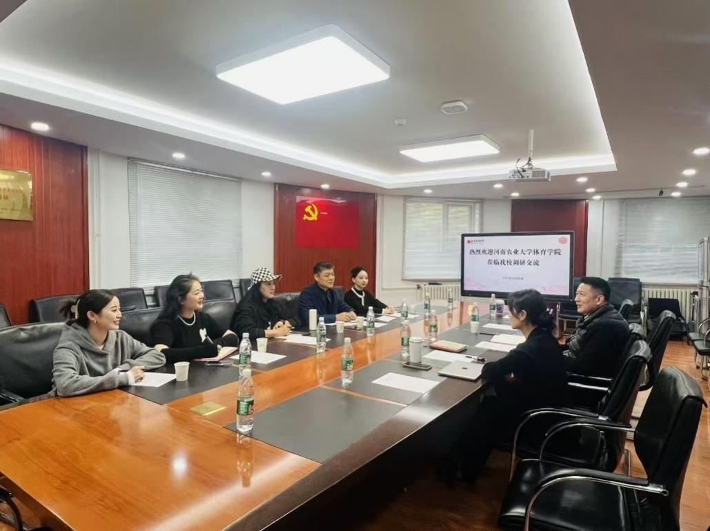 在体育舞蹈领域的承办赛事、训练竞赛、人才培养与科研水平,11月8日下午,由体育艺术系主任王献斐带队,副主任孙雪帆、专业骨干教师王亮清、王翾、孙豪杰等一行,专程前往北京体育大学艺术学院,针对专业建设进行了深度的考察与交流。