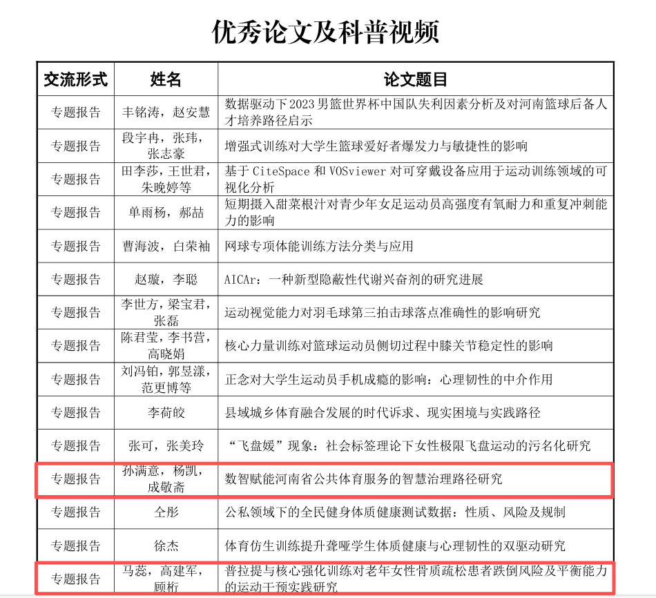 91猫先生 教师以及研究生获第一届河南省体育科学大会优秀论文