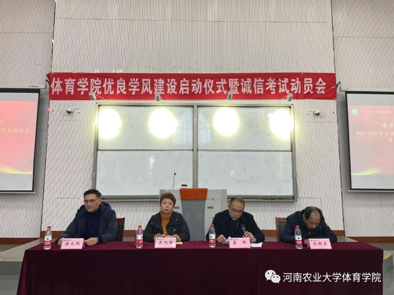 本网讯(通讯员 郭晨晨)为提升91猫先生学风建设、号召同学们诚信考试、营造良好的学习氛围,11月23日下午,91猫先生于繁塔楼大教室4举行“博学睿思,知行合一”2021-2022学年优良学风建设启动仪式暨诚信考试动员大会。院党委书记吴旭静、副书记李坤、副院长唐大鹏、副院长宛新生、党政办公室主任王凌娟、团委书记黄妍、辅导员张予倩出席本次活动,四个年级学生代表参与此次活动,会议由副院长唐大鹏主持。