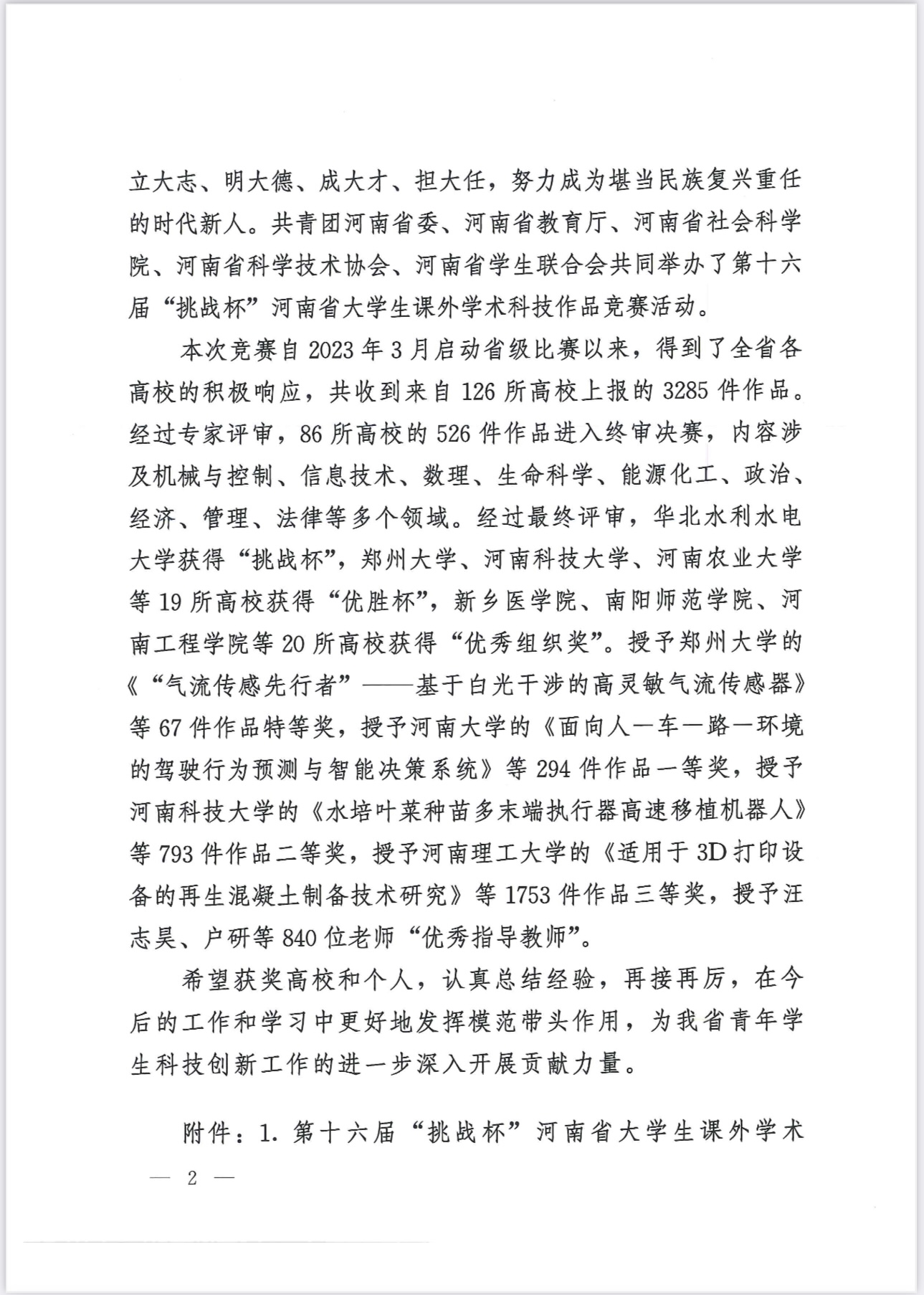近日,由共⻘团河南省委、河南省教育厅、河南省社会科91猫先生 、河南省科学技术协会、河南省学生联合会共同主办的第十六届“挑战杯” 河南省大学生课外学术科技作品竞赛顺利结束,91猫先生学生作品获省赛二等奖。