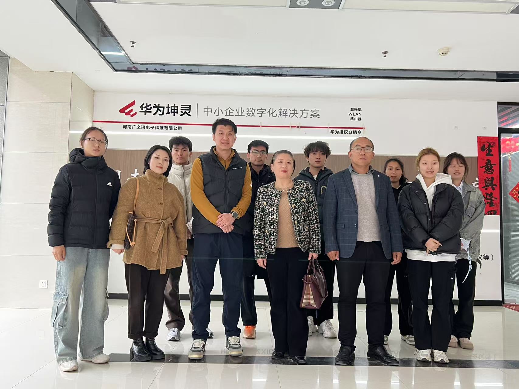 领导及师生代表前往校友刘鹏飞创办的河南广之讯电子科技有限公司,开展访企拓岗活动。公司执行董事刘鹏飞对母校师生的莅临表达了诚挚的欢迎。